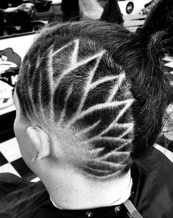 Megan is the artist of the group. Multitalented in the fact she can draw, paint, put a design in your hair and give you one hell of a haircut to boot. She has definitely broken out her shell and is quickly becoming one of the unforgettable faces of the shop. Her detail is strong and so are her abilities to provide you with exactly what you need. . Come check her out, you will not be disappointed.
